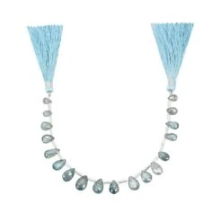 32cts Blue Zircon Top Side Drill Faceted Pear Approx 5×3 To 10x6mm, 15cm Strand With Spacers