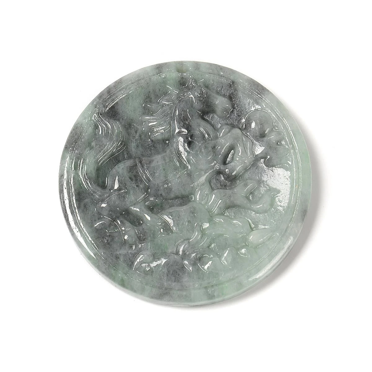 115cts Type A Green & Grey Jadeite Horse Pendant (Wishes Succeed Very Soon), Approx 50mm, 1pcs