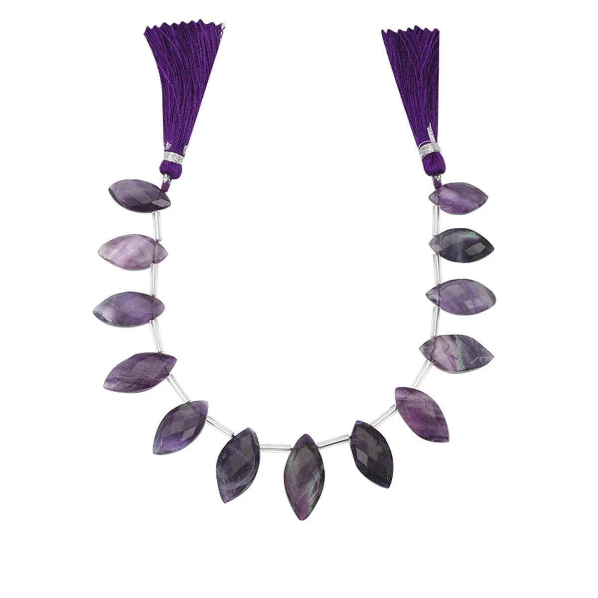120cts Blue John Fluorite Faceted Marquoise Approx 15×8 To 23x11mm, 19cm Strand With Spacers