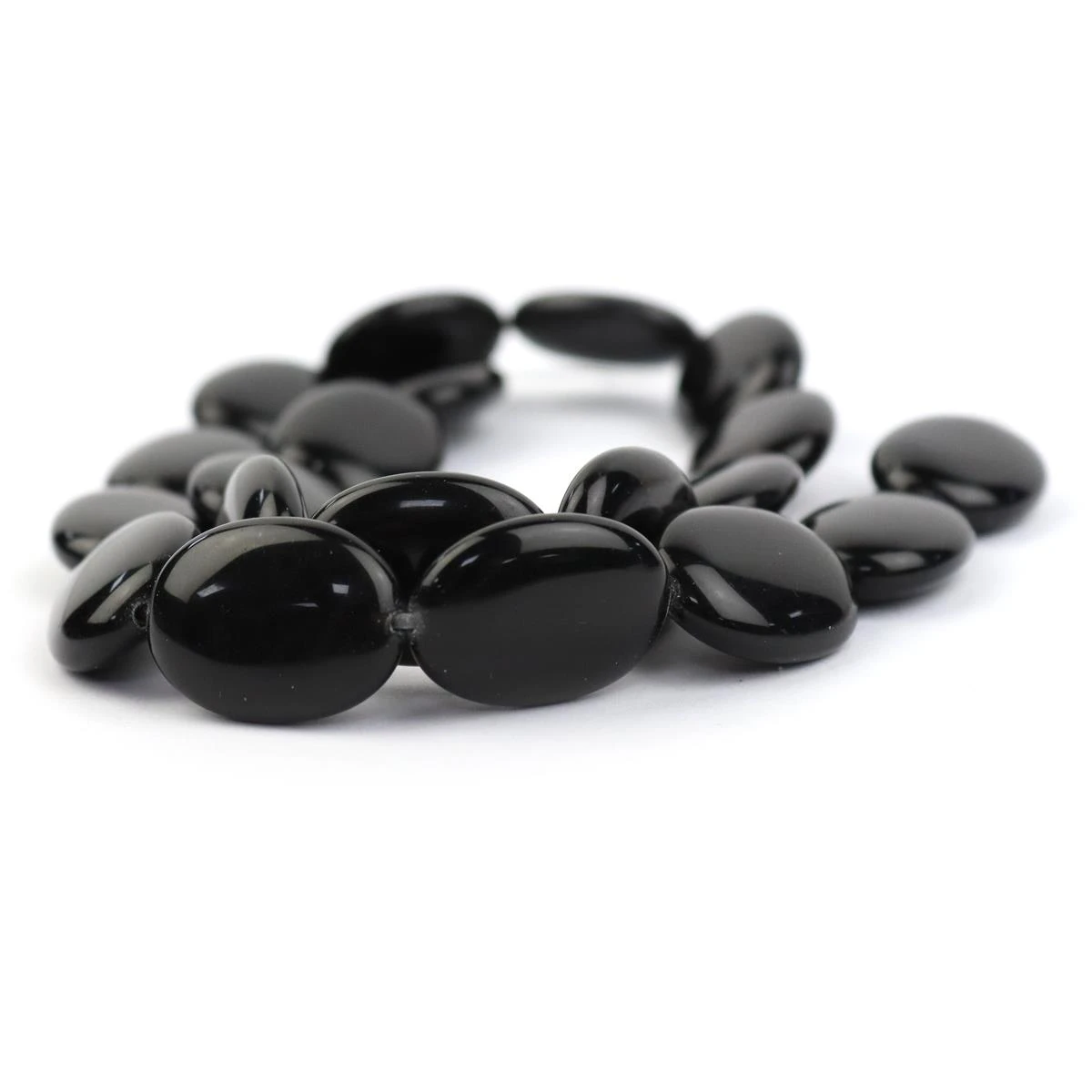 240cts Black Obsidian Puffy Ovals Approx 15x20mm, 38cm Gemstone Strand