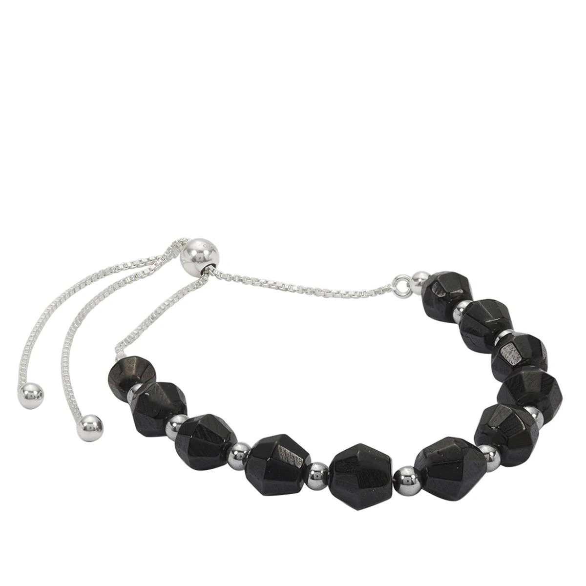 25cts Black Spinel Faceted Bicones Approx 7mm, 925 Sterling Silver Slider Bracelet With Hematite Spacers