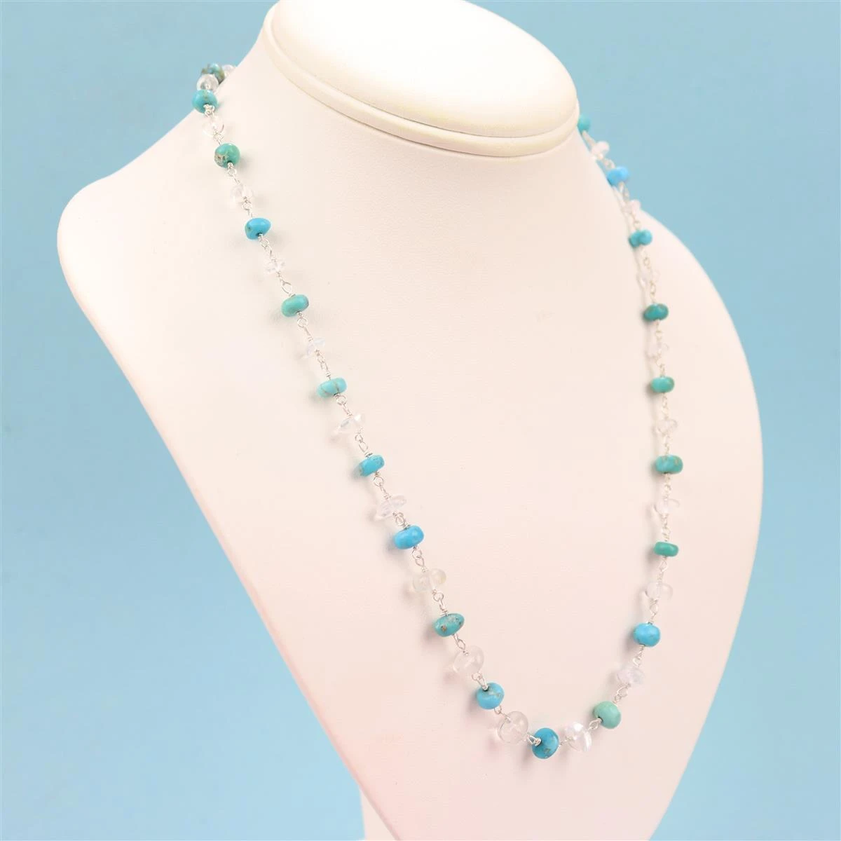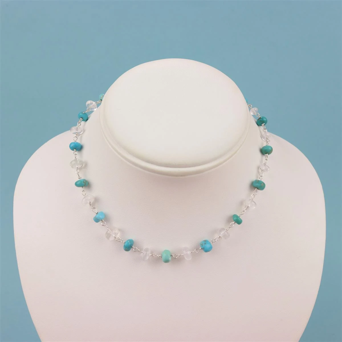 27cts 925 Sterling Silver Sleeping Beauty Turquoise & White Topaz Chain, 50cm