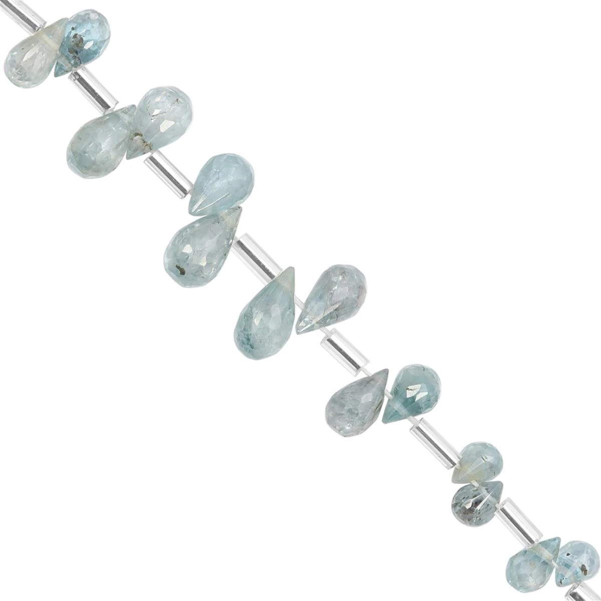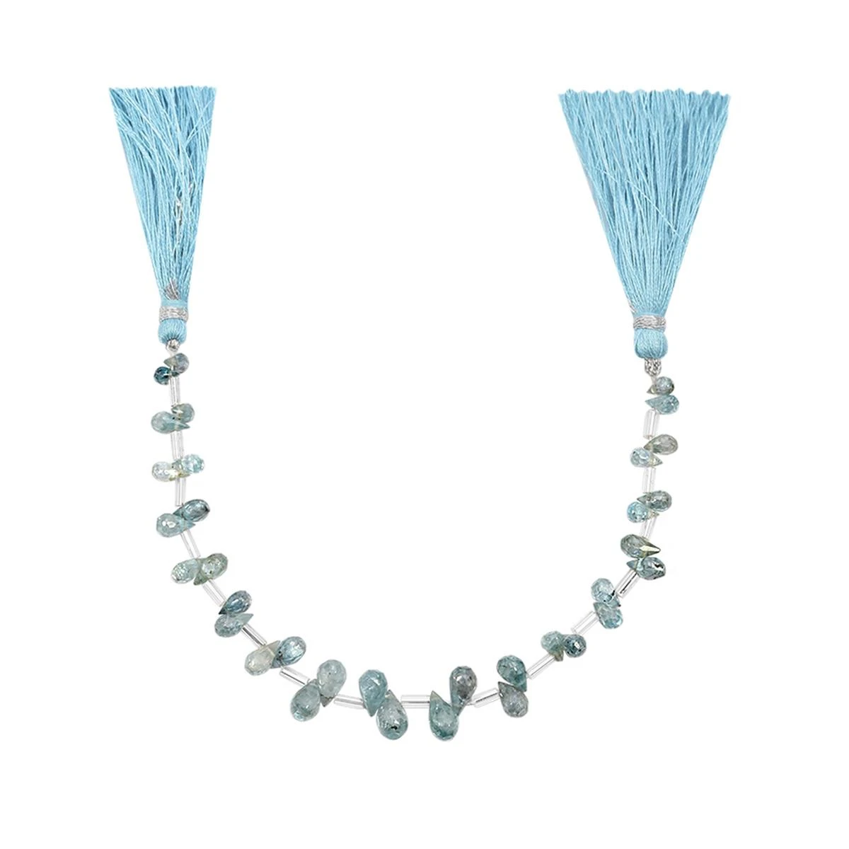 30cts Blue Zircon Top Side Drill Faceted Drops Approx 4×3 To 10x5mm, 15cm Strand With Spacers
