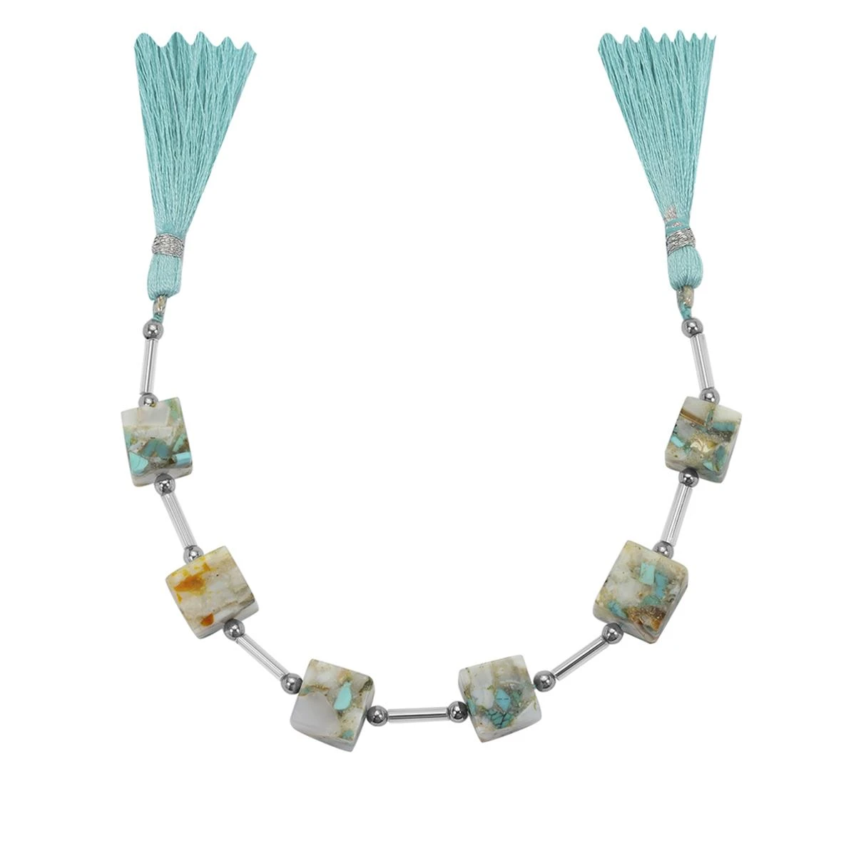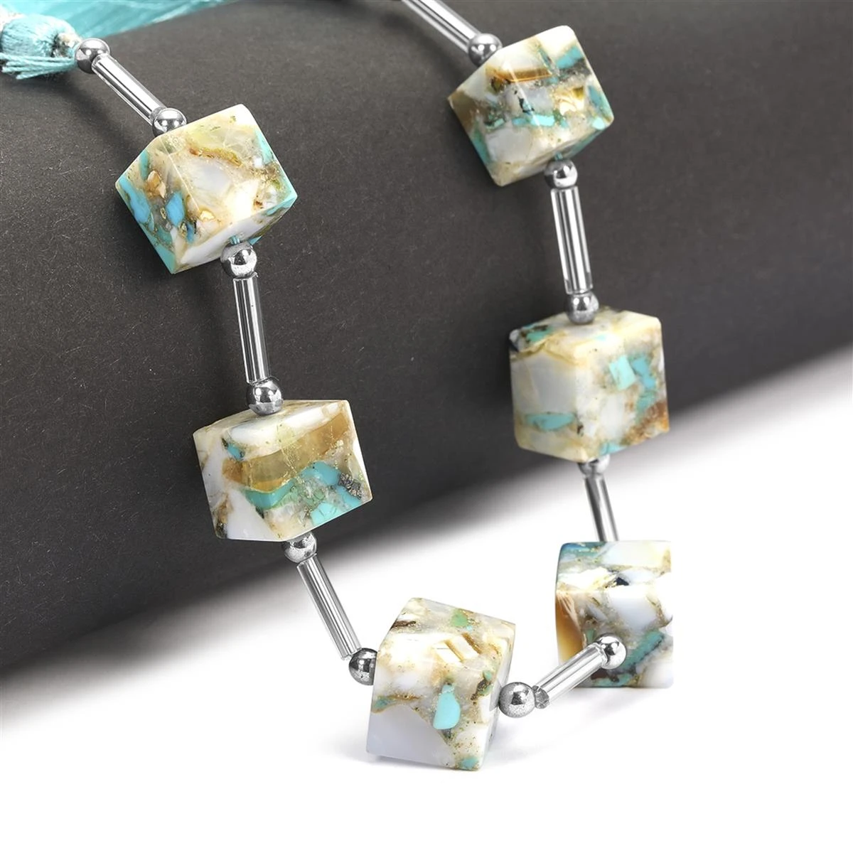 A Charming Opal With Turquoise Smooth Cube Strand for gems collection to enhance your designs beauty by combining these strands.