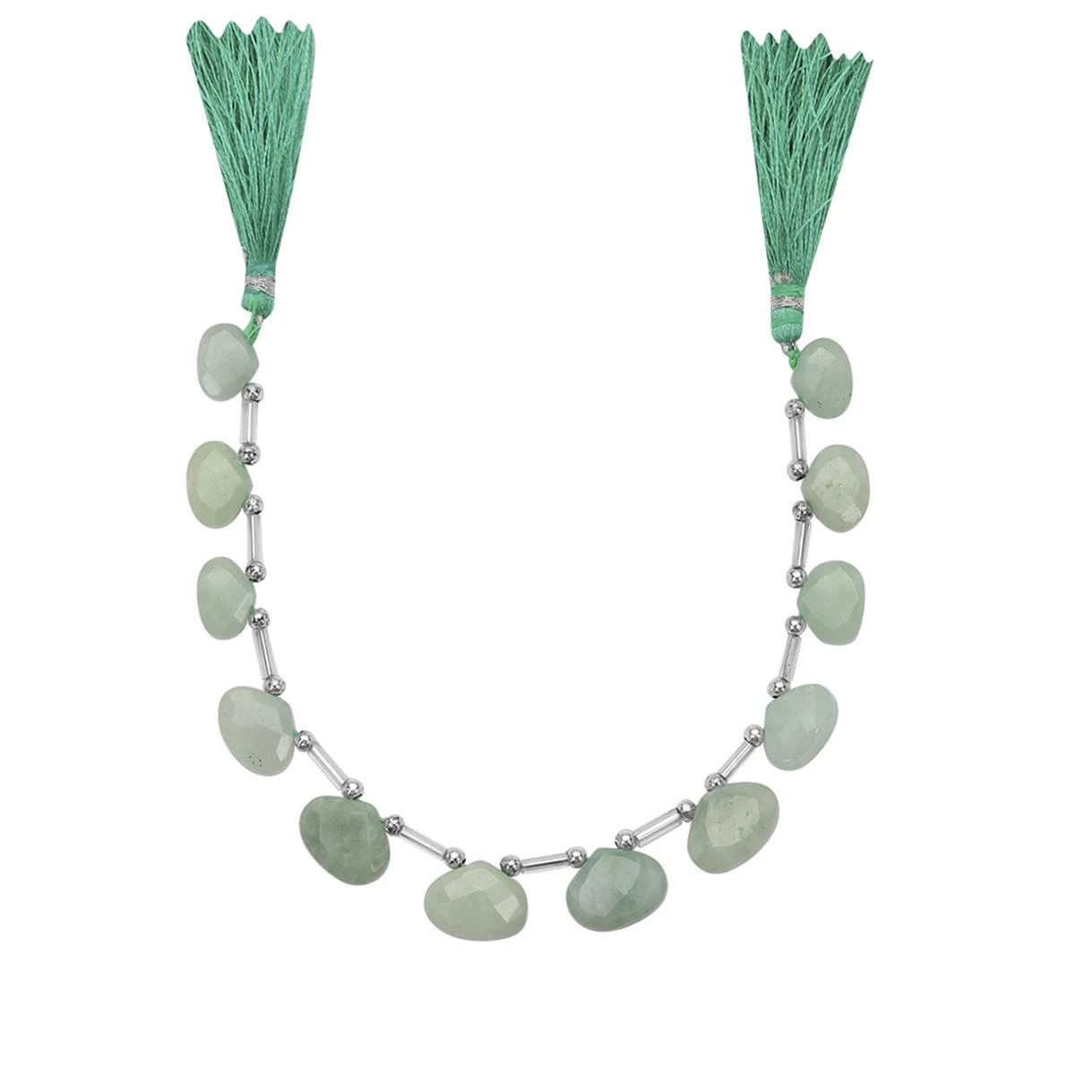 75cts Type A Green Jadeite Jade Faceted Fancy Approx 8×10 To 10x14mm, 20cm Strand With Spacers