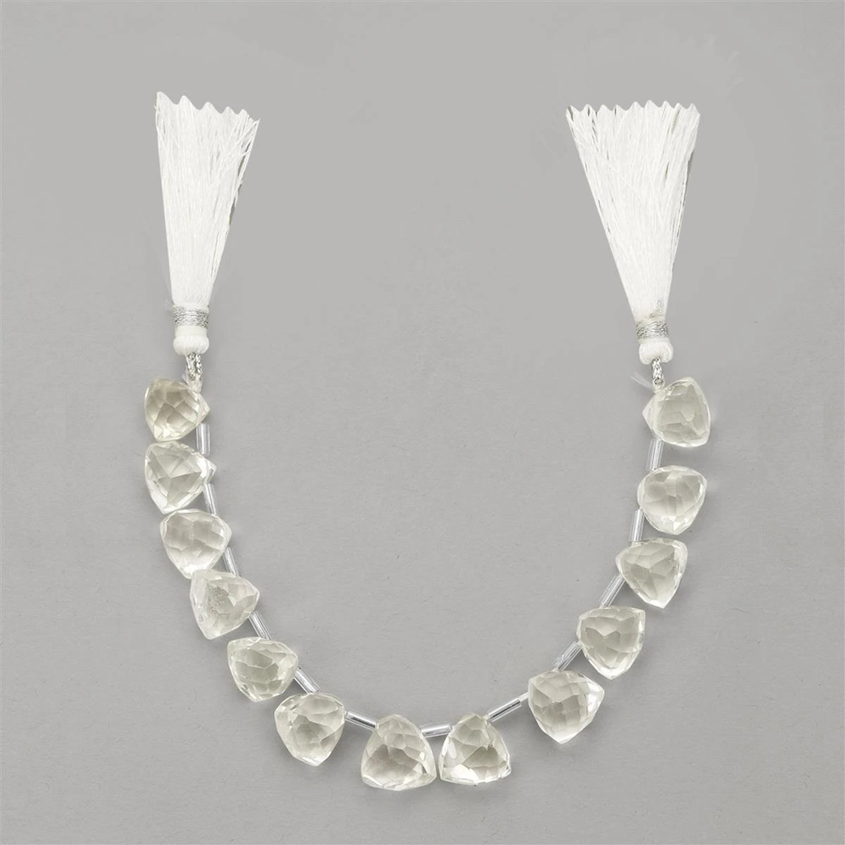 80cts Clear Quartz Faceted Trillions Approx 9 To 11mm, 13cm Strand With Spacers