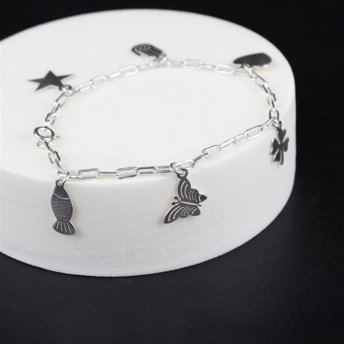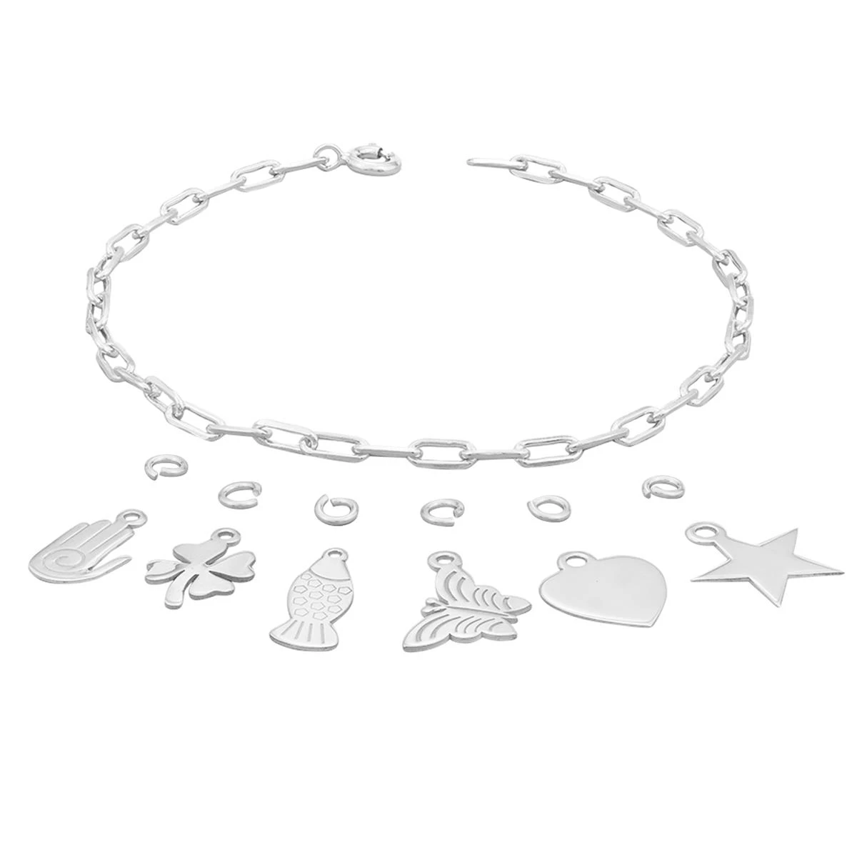Be the first to review “925 Sterling Silver 1x Long Link 8″ Bracelet With Charms” Cancel reply