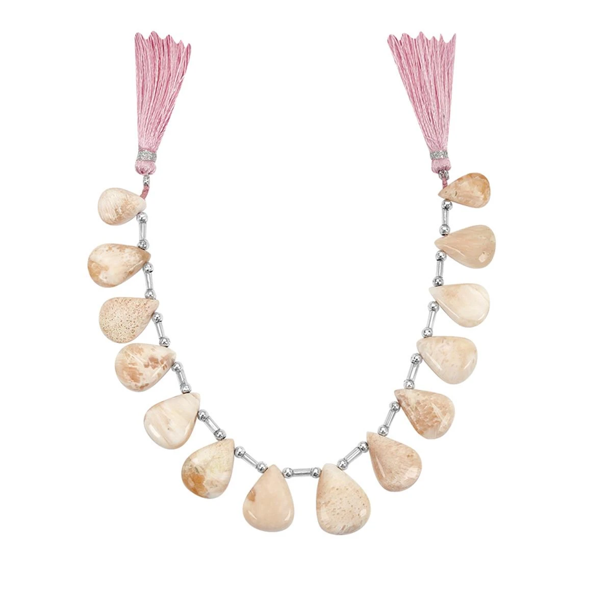 95cts Scolecite Smooth Pear Approx 14×10 To 19x13mm, 19cm Strand With Spacers